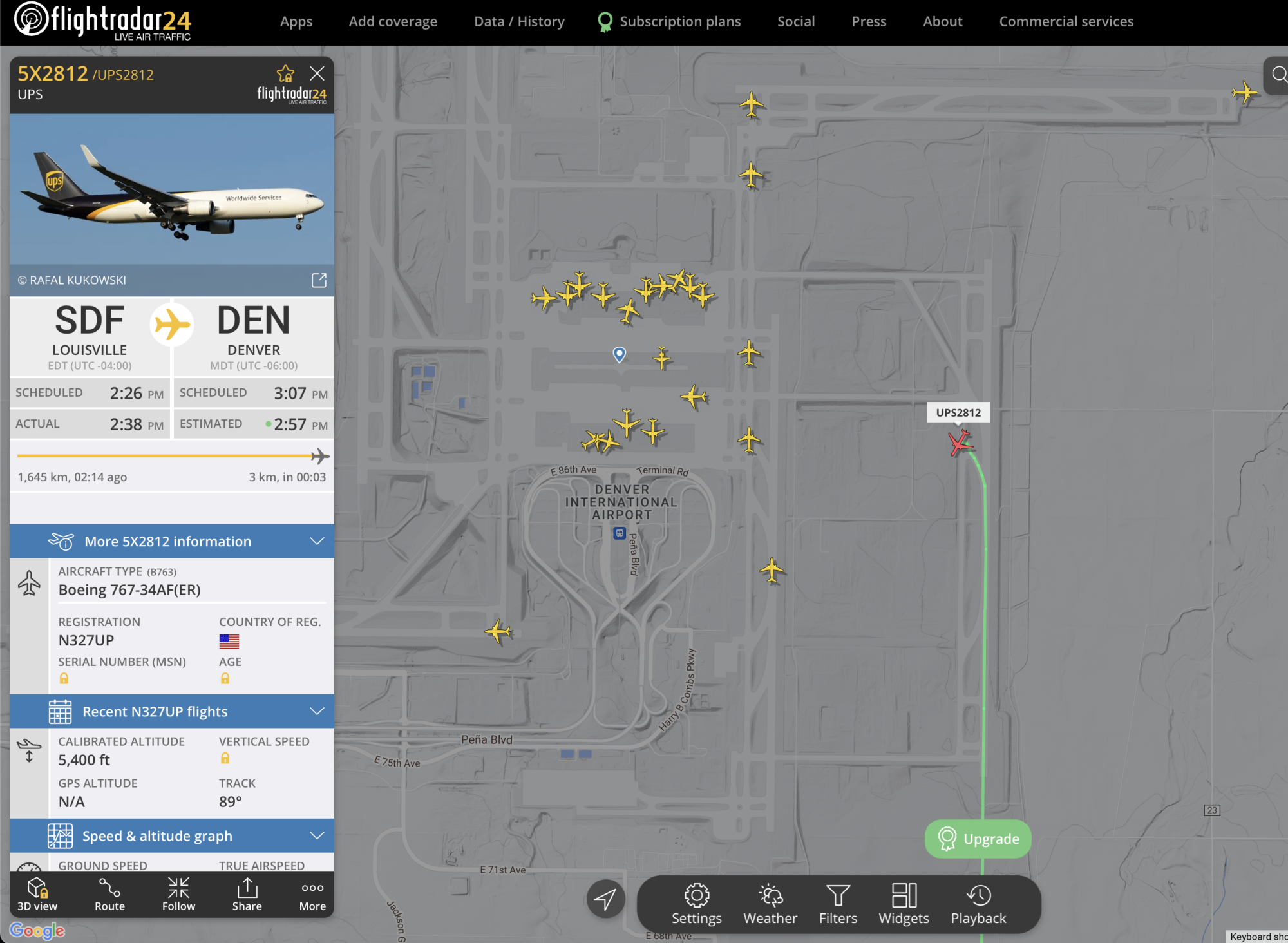 Select only UPS on the left: https://flightaware.com/live/findflight?origin=KSDF&destination=KIADHow can I find my flight info since my watch and phone left KY at3:41pm so SDF to IAD
