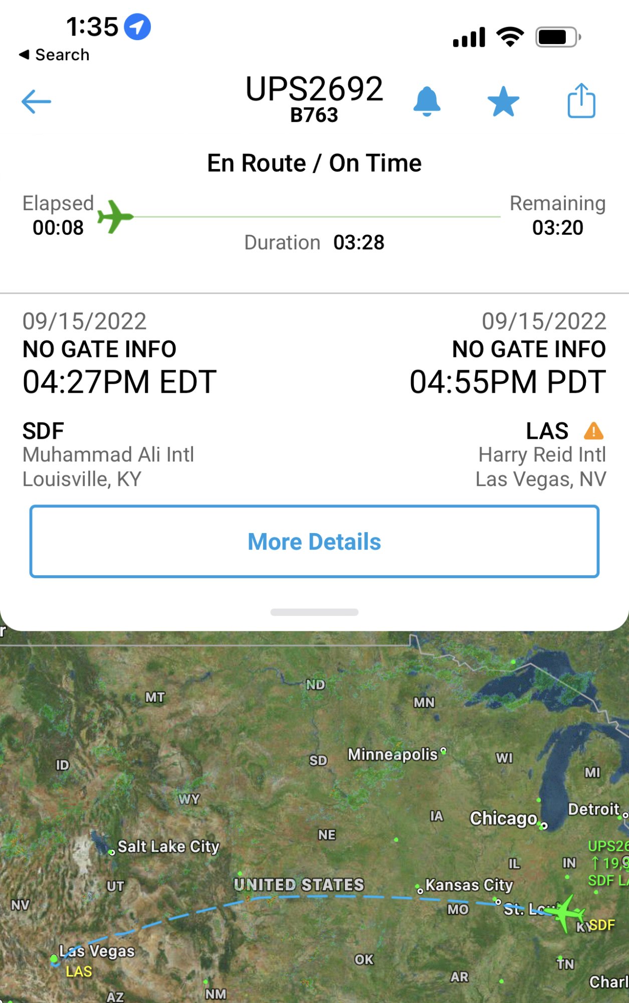 What flight? I couldn’t seem to find anything that left for NC around when my departure scan was!The FlightRadar24 iPhone app is tres cool!! I'm "watching" my UPS flight cruise over KY on the way to NC in real time. (Or rather, the flight I *think* my iPhone is on.)