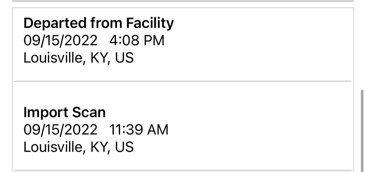 I got a departure scan from KY at 3:56 EDT (1.5 hours ago) Matches with UPS2900 to LAX.am I the only one in Los Angeles area who hasn't got a departure scan? 😭