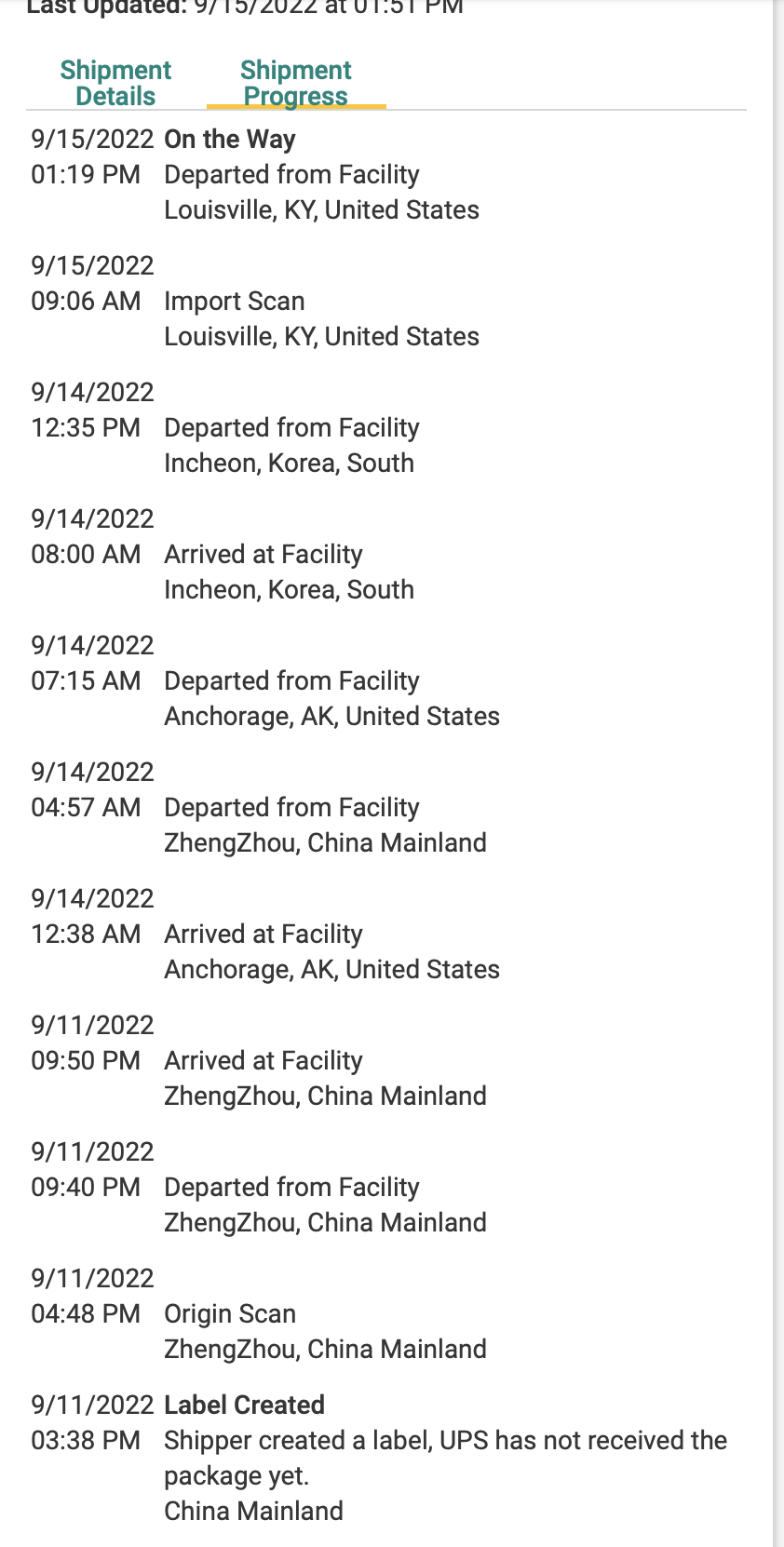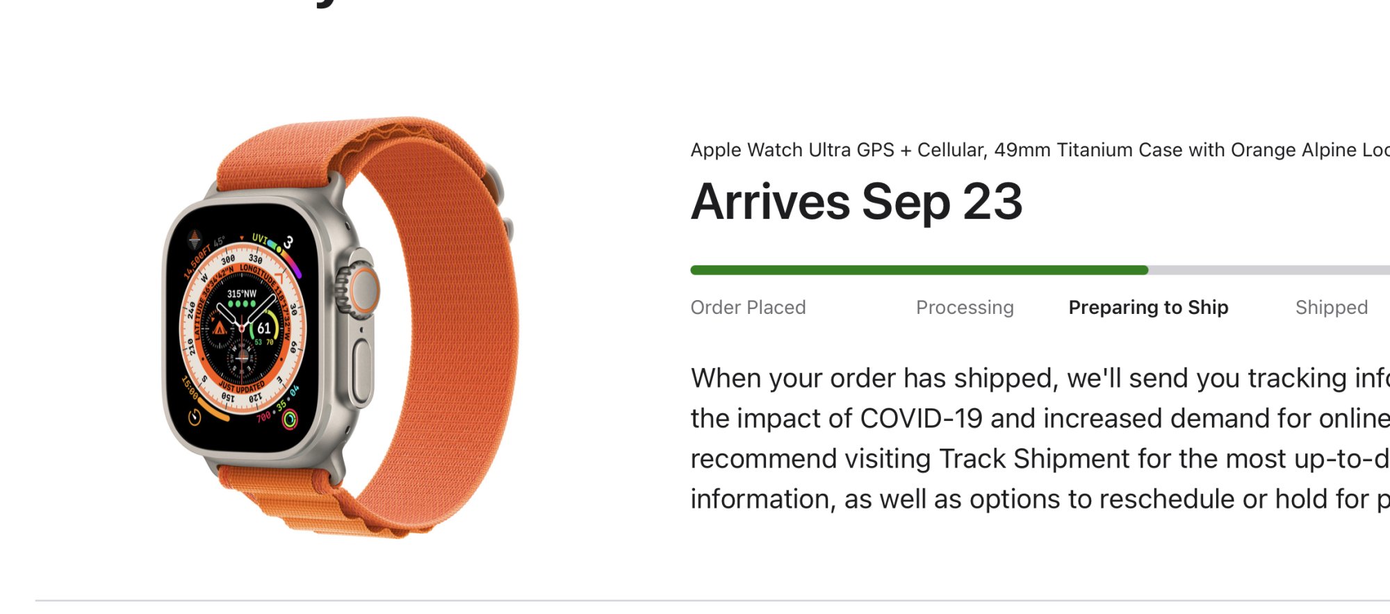 Just called my CC. They put a hold on my address so both my phone and watch band will be held for pick up at 7:30 in the morning. My phone hasnāt departed Ky so couldnāt see the hold yet that I put on.Not yet, but the consensus seems to be that won't happen 'til it's on the ground and the local distribution center. If it's on the flight I assume it's on, I might get something tonight, but who knows?