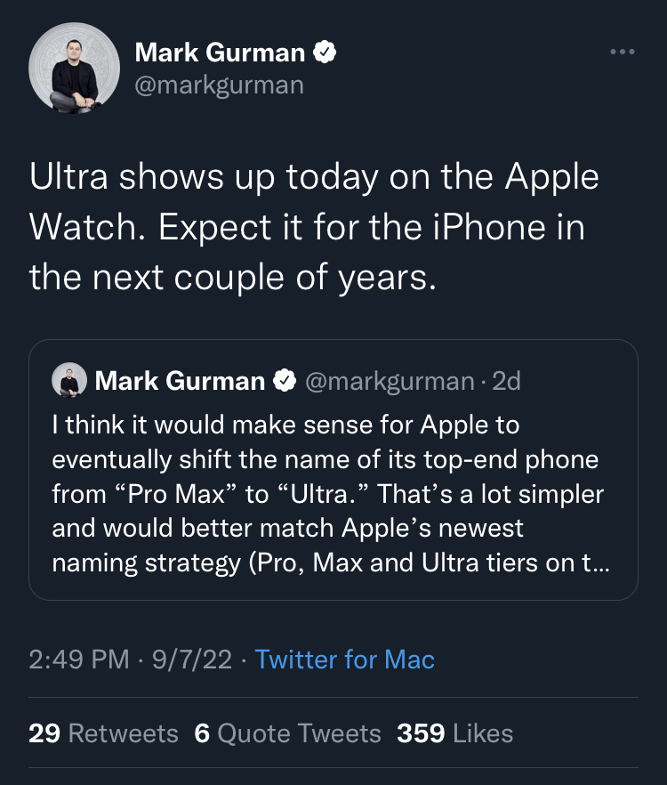 You are actually correct 😄 :I’m waiting for the iPhone ultra. The most extreme iPhone yet. Lol