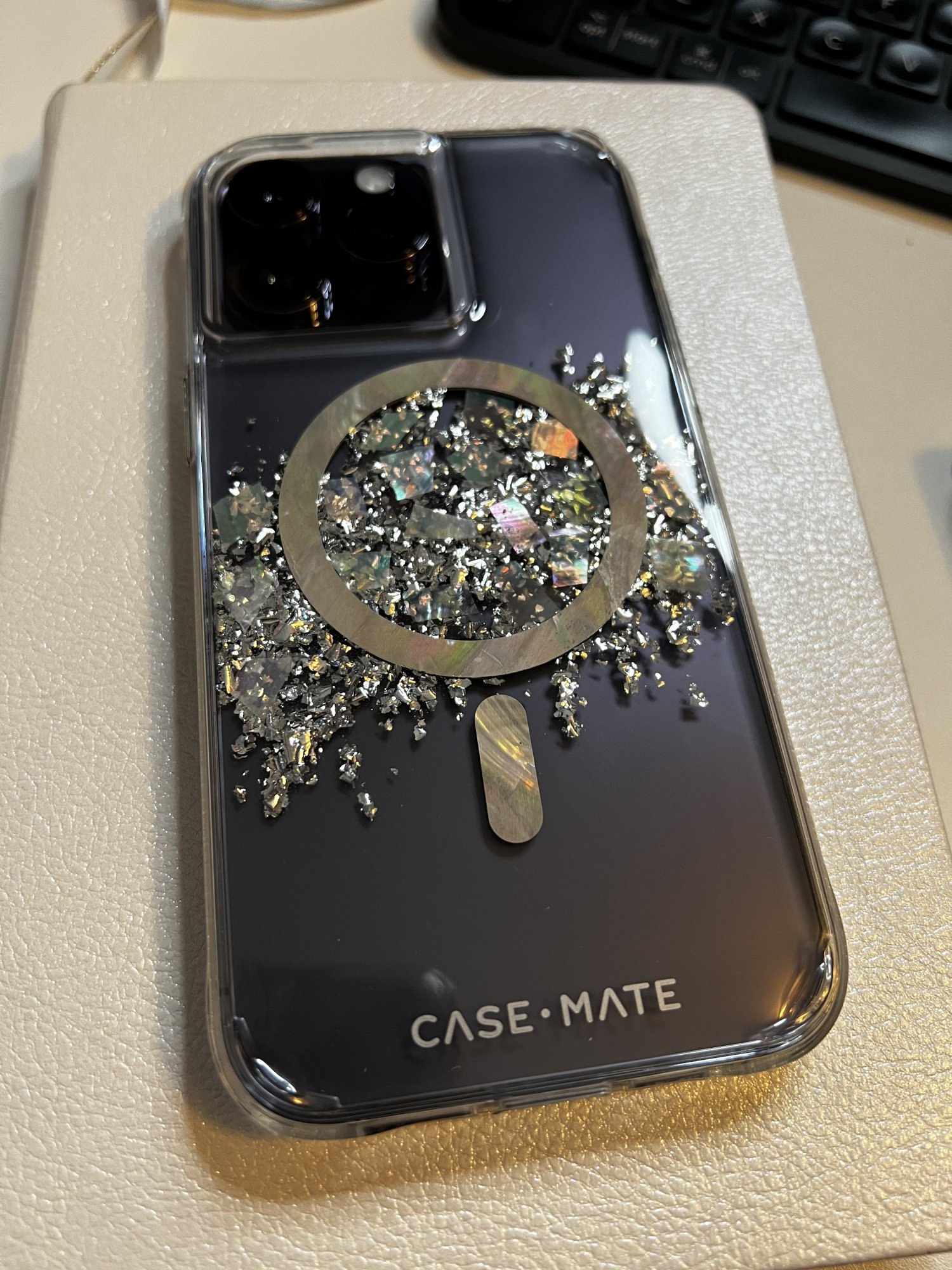 I always get Case Mate glitzy cases. I have two waiting to be installed when/ if my Purple phone ever arrives. Case Mate MagSafe Karat Onyx and Case Mate MagSafe Karat Marble. Canāt wait!!!My pictures arenāt doing this lovely Deep Purple justice. Itās beautiful! Canāt wait to see it in daylight! And yes, sparkle, sparkle! āØāØāØ