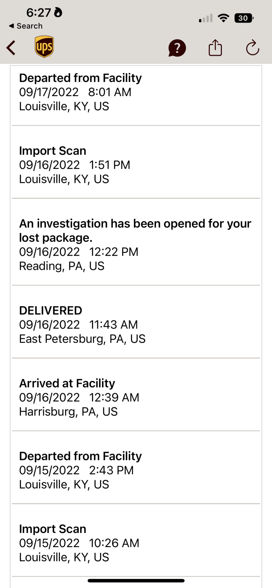 Well, I got hosed by UPS. Delivery date of the 16th. On the 14th I requested a hold on the package at the CC so that I could pick it up in the morning, rather than wait for home delivery, which is usually at 7ish at night in my neighborhood. Friday morning, the tracking showed ārequest for hold acknowledgedā and āout for deliveryā. So, which is it? I called the customer support line. It took a while to get past the robot voice and to a human. I was informed it was being held. About a half hour later tracking changed, showing ābeing held for pickupā. Great! Iām on my way. I get there, they canāt find my package. Iām there close to an hour while they make calls and search in their building, as well as the loading docks facility next door. No package. They blame the facility across town where the package first arrived. (The scans clearly show it arriving at this facility in the wee hours of the morning). They apologize and thank me for being calm and patient. They tell me they will call me in 2 hours, no matter what, to let me know what is going on. Finally, 4 hours later, they call and say the package is no where to be found. They also tell me that I have to call customer support and tell them to put a tracer on it. (Why do I have to initiate this?!) So, I spend several minutes trying to get around the robot voice again, having much more difficulty getting a live person than I did earlier in the morning. While searching the web for ideas on getting to a live person, I see an email for customer support, so I send an email asking for help with the situation. I finally get to a live person and she says no, she canāt put a tracer on the package and asks for my email address. Tells me she is sending me an email and says goodbye. The email is nothing more than a canned message telling me to go on the website and file a claim. About an hour later I get a response from the email I sent to customer support. Their email apologizes for the problem and tells me since it is an international shipment, I canāt file a claim, I have to contact Apple. Itās āpass the buckā at every turn. The CC, of course, is closed all weekend. Iām hoping for a call on Monday morning reporting that it was found on one of the trucks returning on Friday evening after they closed. Most likely, Iām stuck going to Apple and having to start over with an order. UPS only charged me $5.99 for this pleasant experience! How can I be so fortunate?!?!