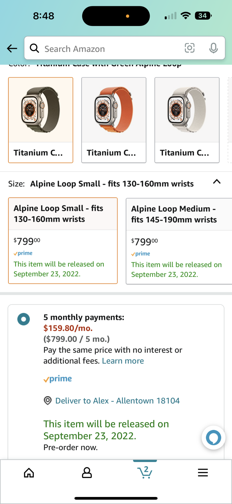 I’m looking to get one also Amazon has them for stock and also on installments first time I see an apple product on Amazon on installments.Wonder what the Apple Store inventory will be like next week for the Ultra. Kind of want to get one but shipping is first week of November now.