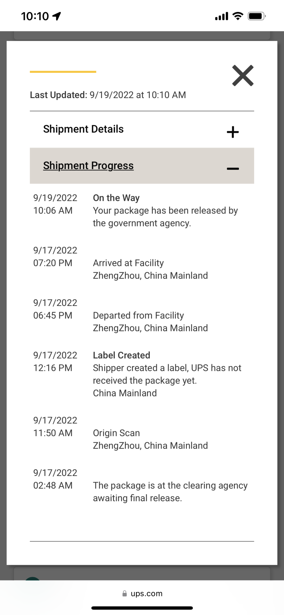 For those of us with the current UPS status of "Your package has been released by the government agency". Does that mean it's still in China? Or stateside? I"ve tracked Apple stuff for years on pre-orders and don't recall ever getting this message.