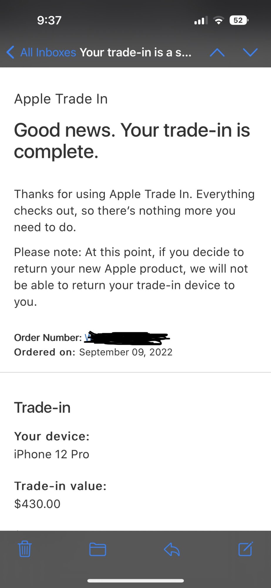 Everything went very smoothly. The iPhone delivery on Friday, the set up/transfer process and now the trade in 🥳