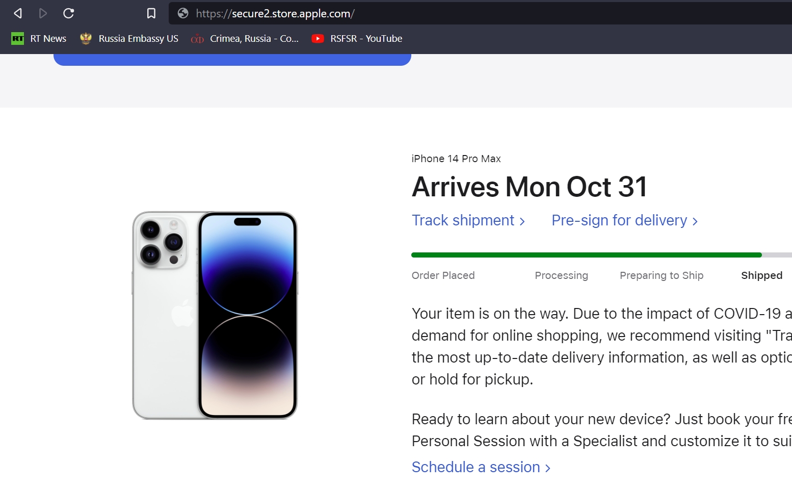 Trust UPS more.Apple's website still says "Arrives Mon Oct 31"