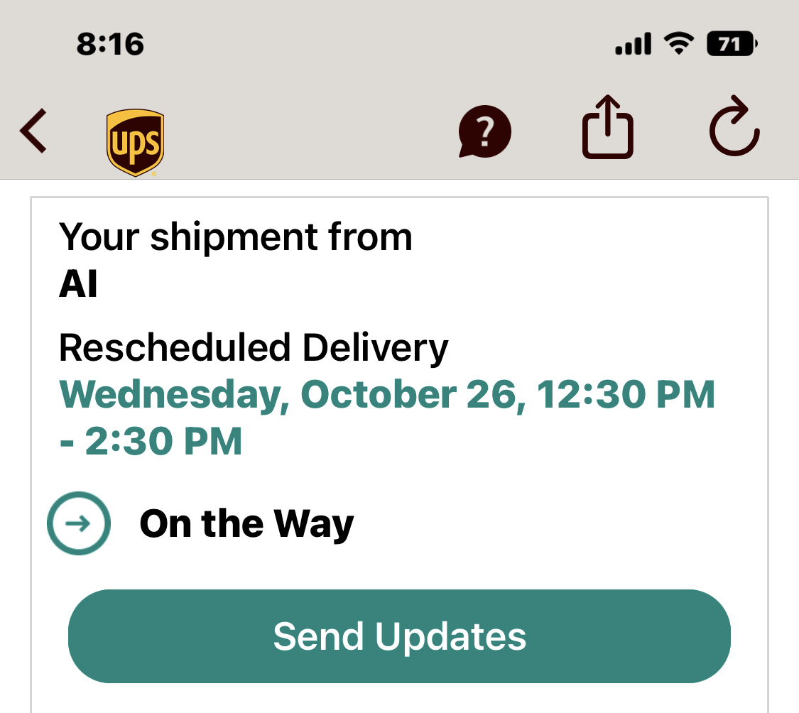 but UPS tracking shows delivery Tue Oct 25...
