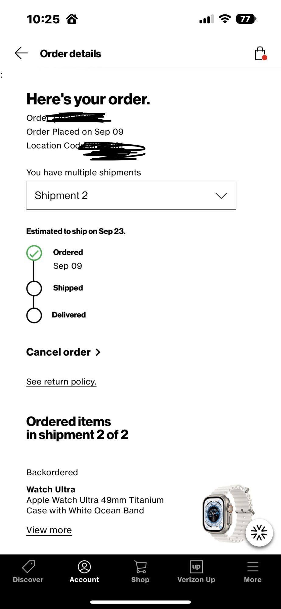 Open it! Apple will accept open box returnsMine has been at my hub today since 5:39am. Of course it’s still processing. I’m not off to pick it up until Tuesday, so the waiting game is annoying, especially since I’ve had the Ultra that I ordered through Apple since yesterday morning. I’m going to return it and keep the Verizon order because of the device credits. I’m so tempted to open it.
