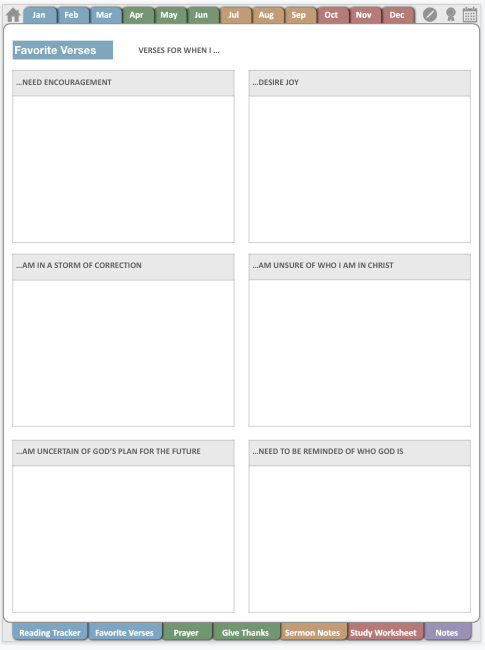 Here is where you can record highlights/outlooks for the month. At the beginning of the month, you can copy and paste one of the custom pages and templates included in the notebook as needed. (see instructions for copying and pasting pages within GoodNotes)