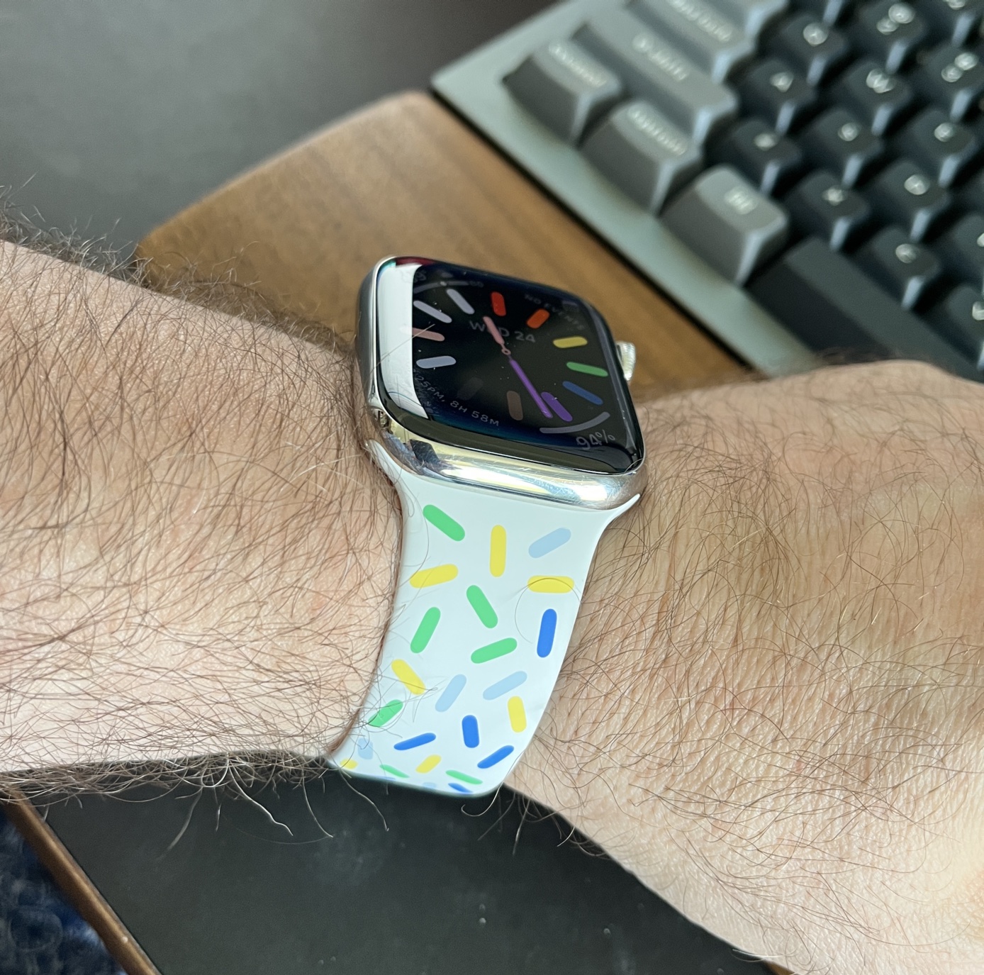 Those dont even look like all rainbow colors? Green gray yellow blue?View attachment 2207049Received my band just about an hour ago. I like it. Looks pretty good in person.