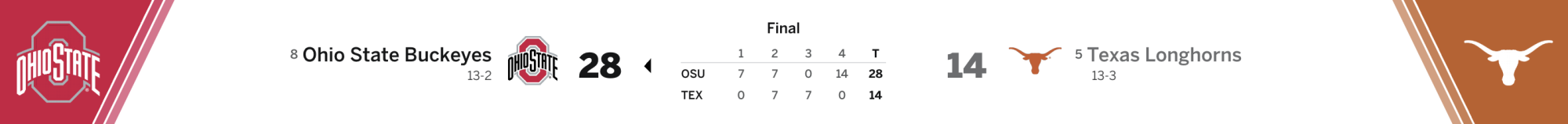 Yah, the first round, aside from ND-IN were pretty much all blow outs. The Quarter finals games between AZ/ TX & ND/GA were both good games (to me). And then as you said, the semi finals were both good games. I feel like there aren't 12 realistic national championship teams every year, but there are certainly more than 4. So with the expanded field, at least the real national champion is almost always assured to be in the field. (Would FL st have won the national championship last year? Probably not, but if there were 8 teams in the field, at least we would have found out) But we do get a few Indianas, SMU's or Boise States in there. Personally I think 8 is the right number. If you're ranked #9 in the country, you're probably not a realistic national champion. But if they do have more than 8, I think giving some teams an extra bye week ins't completely fair, so I'd prefer 16 over 12.I think that only one of the first round games was competitive. Both semi-final were though.