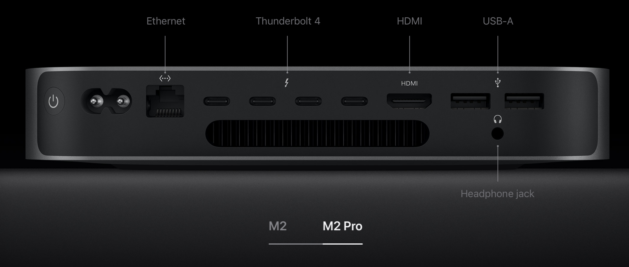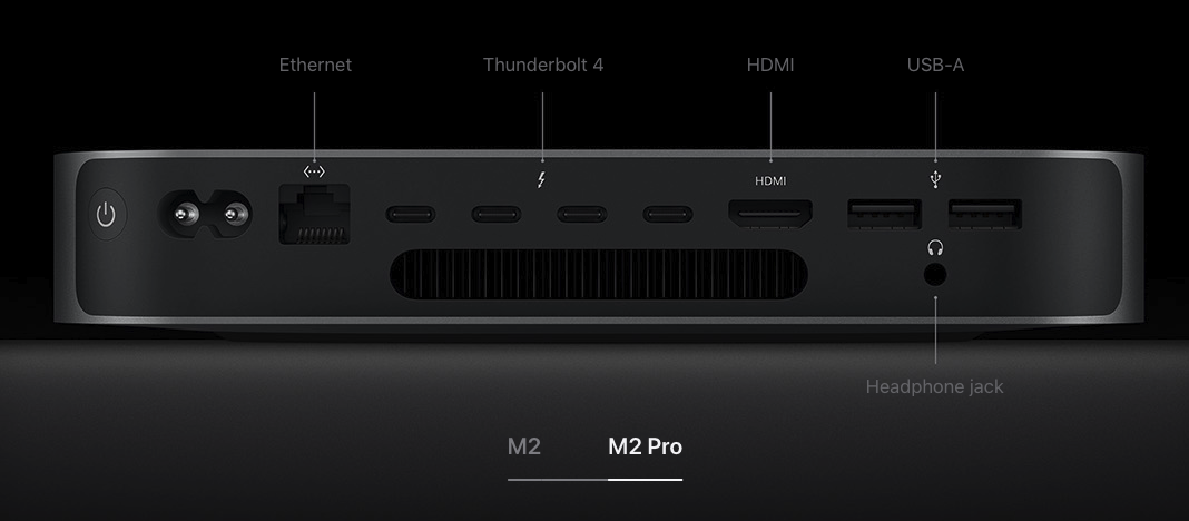 I'm not surprised the M2 Pro model has the four Thunderbolt/USB-C ports, like the Intel Mac Mini it replaced. Too bad it also doesn't come in a Space Gray color option. But it's still good enough for me!And to make sure it wasn't a typo, I also found the image showing four ports. View attachment 2143718