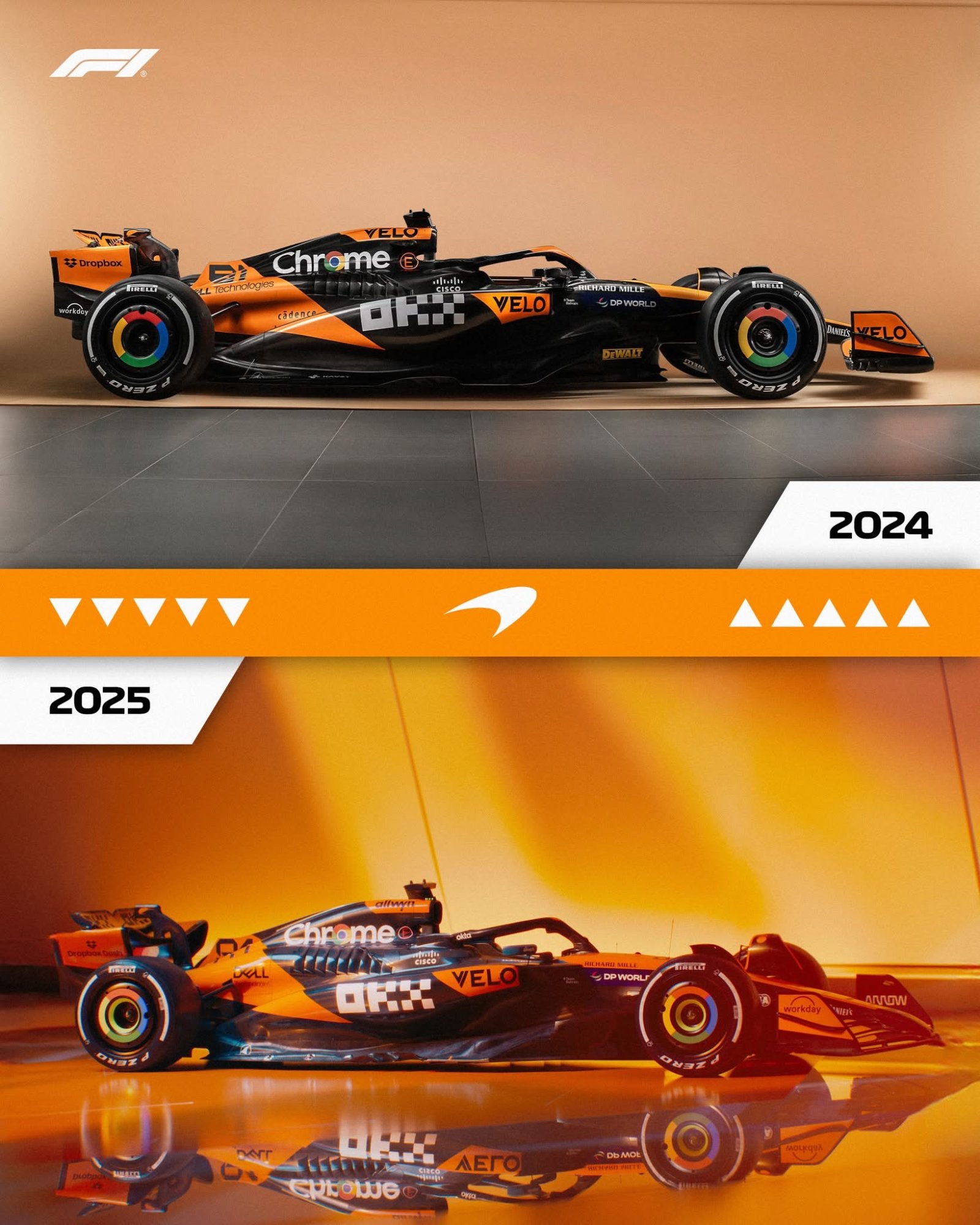This is the only pic I've seen of the Mclaren:At least it's new. This is the 10th season in a row now that Red Bull is using essentially the same identical livery. I've never been a fan of the Red Bull branding but they at least used to mix things up. Now it's hard to tell their cars from different years apart. The 2025 VCARB on the other hand looks great! Goes to show that RB could make an interesting livery if they wanted to.
