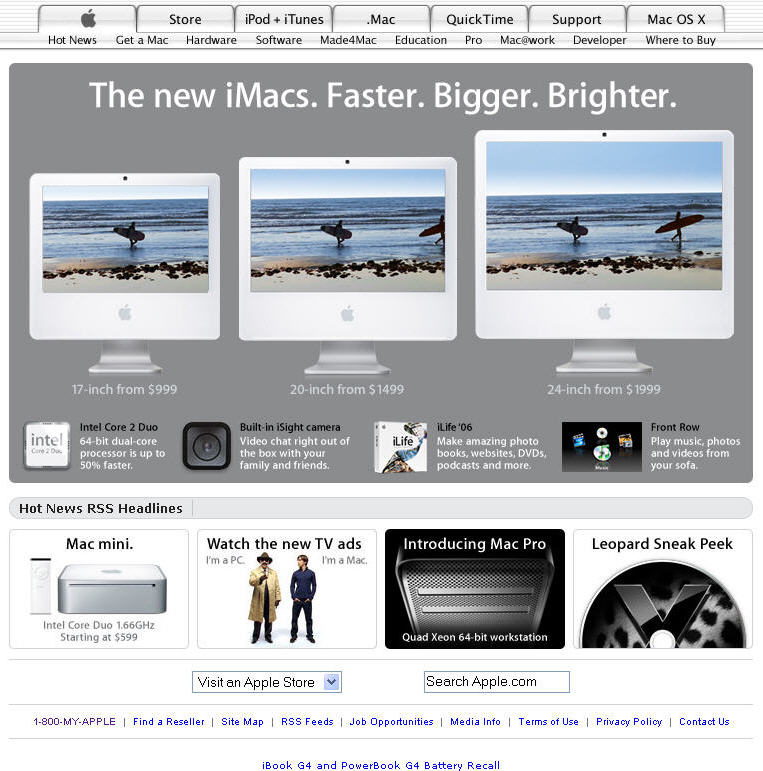 Galex said:According to a press release, Apple releases the 24" iMac today and now also ships all iMacs with Core 2 Duo processors: