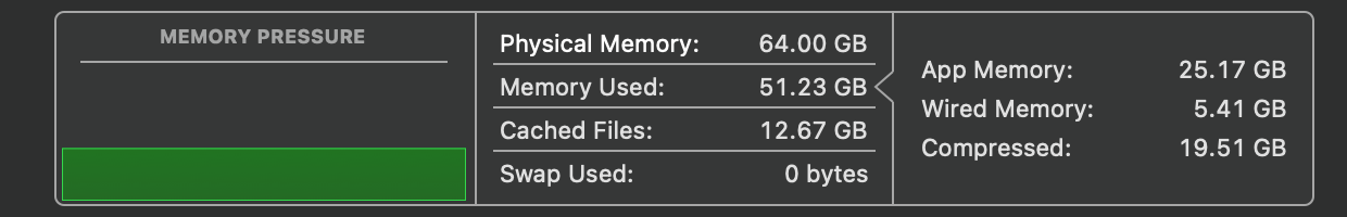 I currently own M2 Max with 32GB RAM. Most of my workday involves using 23GB of RAM (10GB allocated to VM).