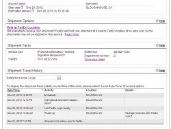 Dec 22, 2012 1:45 AM Arrived at FedEx location INDIANAPOLIS, IN