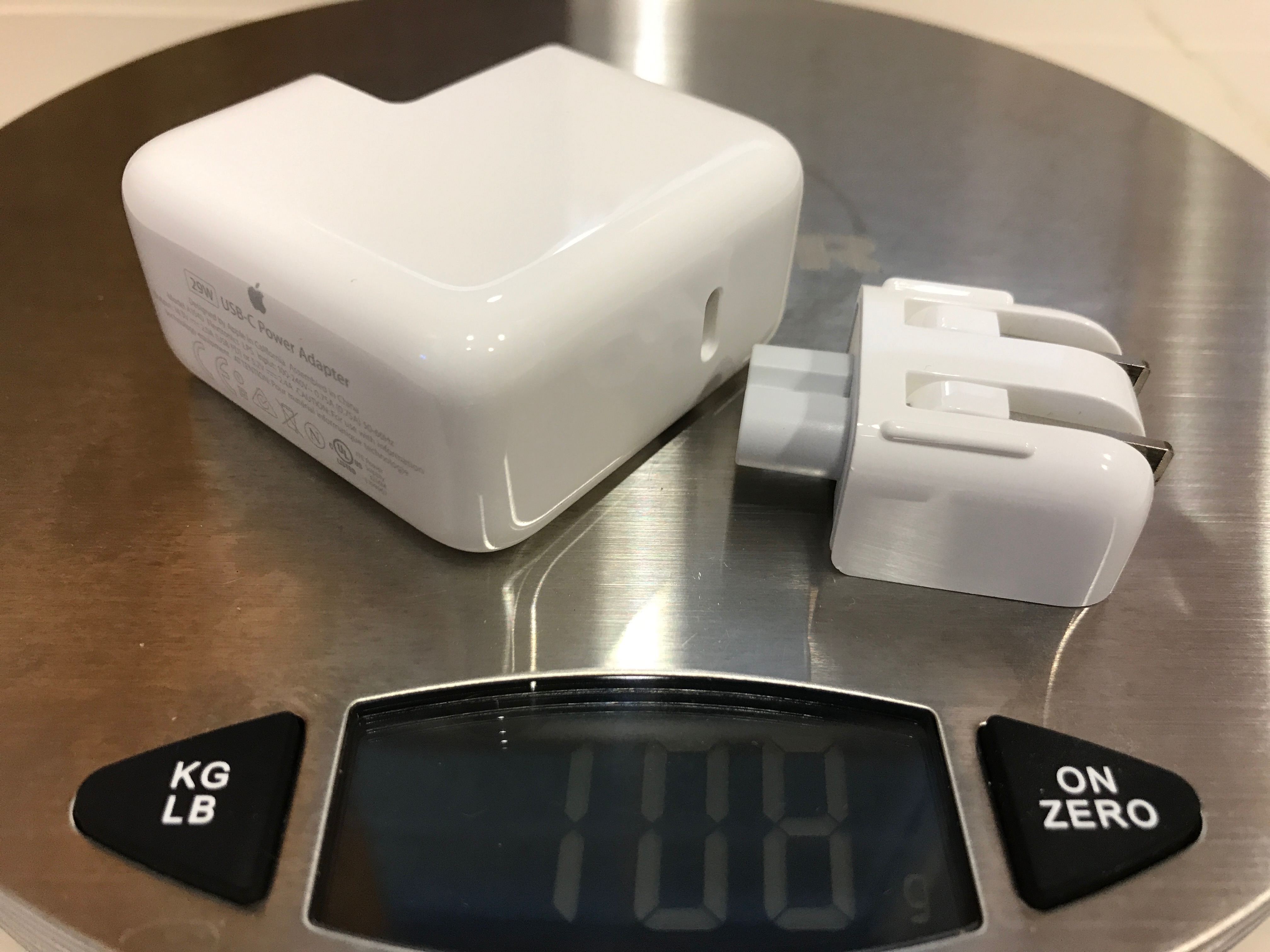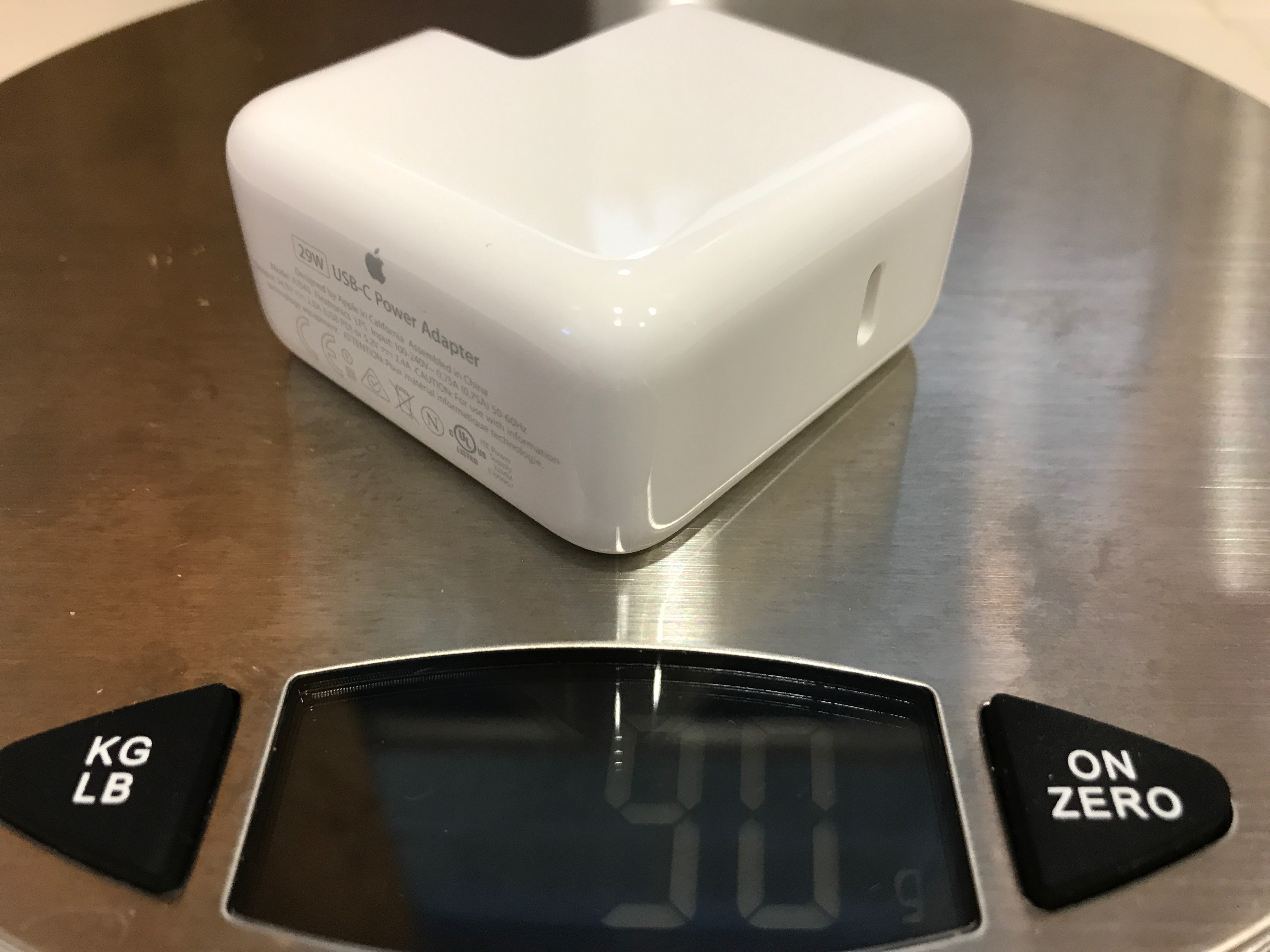 Mine is at 91g (without duckhead), 122g (with 220V Euro/Asia 2-pin plug).