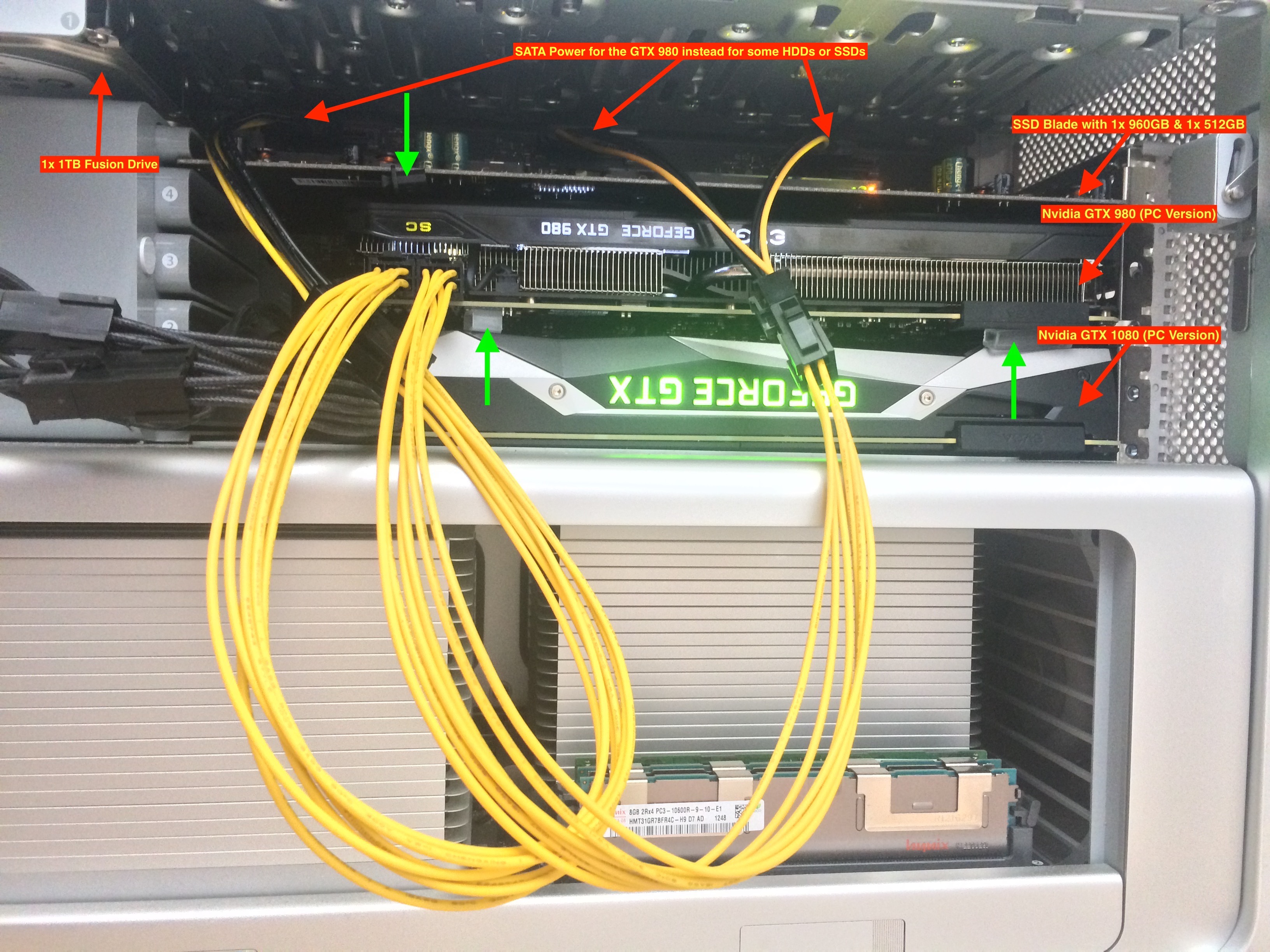 having a 5,1 Mac Pro with 12x 3,46 GHz and currently using an unflashed GTX 980 in it, I was wondering if my machine can handle 2 GTX 1080's... - without an extra PSU.