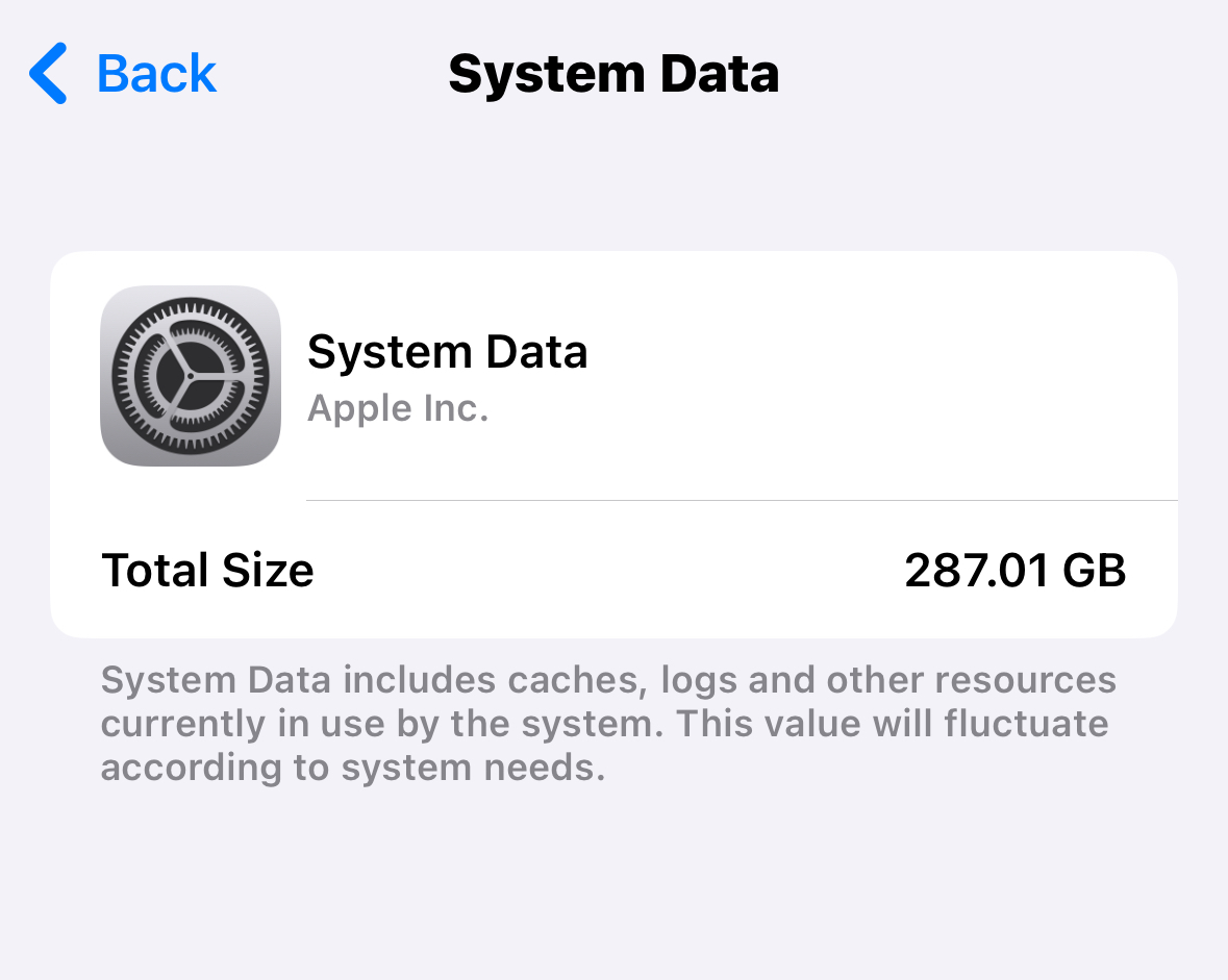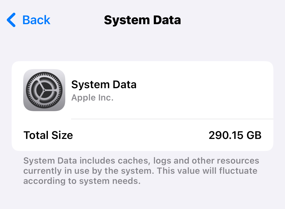I have a 512GB iPhone 15 Pro. I’ve always had lots of free space. Recently my phone has started acting very slow and giving me storage full warnings. I checked and it’s showing nearly 300GB of System Data! How could this be? Even more confusing is when I deleted a 3GB app to immediately free some space, the System Data swelled by that amount almost instantaneously thereby occupying the space I just freed up. It didn’t even have time to download that 3GB over the internet so I don’t understand how that happened.