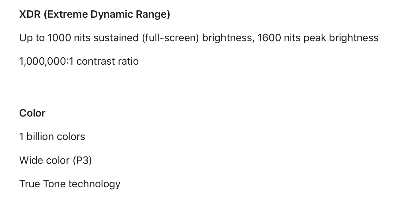 Apple Silicon M1 supports "billion of colors" aka HDR 10-bit output