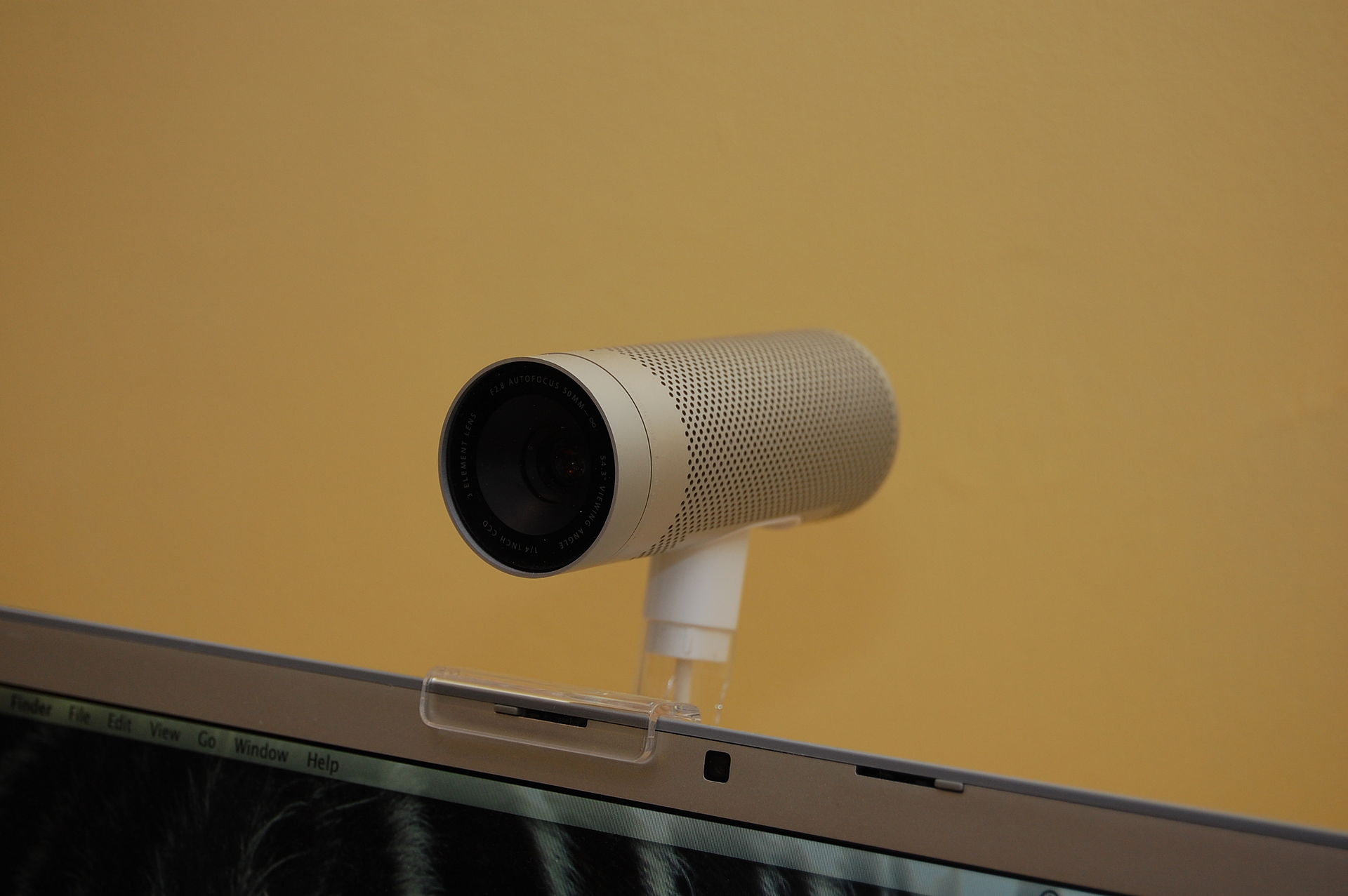You know that, like, every webcam in the world that isnt built in clips on, right? Even expensive ones. I also would like to introduce you to a product I owned (still do actually, it's... somewhere... prob should go find that box...) that apple made that was very expensive and clipped to my very expensive powerbook - the original isight (pic from wikipedia below)