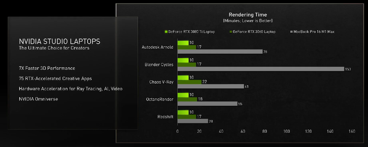 NVidia has done these slides since the 20 series launch, maybe before. Looking at the chart it’s based on RTX (raytracing) performance. Which undoubtedly NVidia has an advantage in because of dedicated hardware (similar to the “biased” tests that utilized the M1 gpus dedicated hardware).What are you dragging this marketing BS here for? Anyone can draw slides with any numbers they want. This is utterly meaningless without detailed methodology and benchmark breakdown.