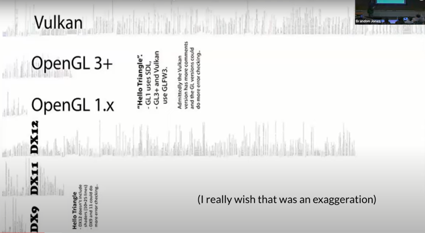 Vulkan is so verbose that most applications are still using OpenGL and that makes application development difficult.