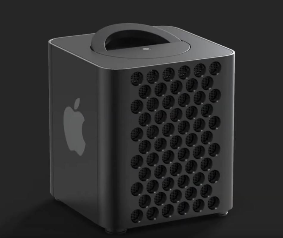 Heat sink (with vapor chamber?) filling interior volume between mobo & PSU(s); 2019 Mac Pro-style 3D venting front & rear, 180mm intake fan up front, 2021 MacBook Pro-style feet...