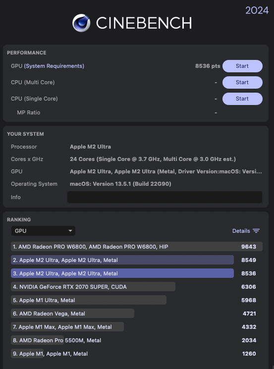 FWIW: M2 Ultra 24 CPU, 60 GPU