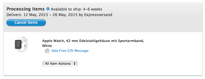 Now, I don't buy that Apple won't have been aware that this particular model (42mm SS LB) won't be shipped on 4/24. If you knew that some of your models had limited availability or no availability. Then allow users to order in the morning instead of waking pre-order night and rushing to know when ordered that "Oh No.. I'm not getting it on 4/24".