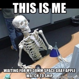Got notification today at 10 am that my 42 mm Stainless Steel with Black Sport Band has shipped. Originally supposed to deliver may 13 - may 27, now estimated to arrive Wednesday the 29th.