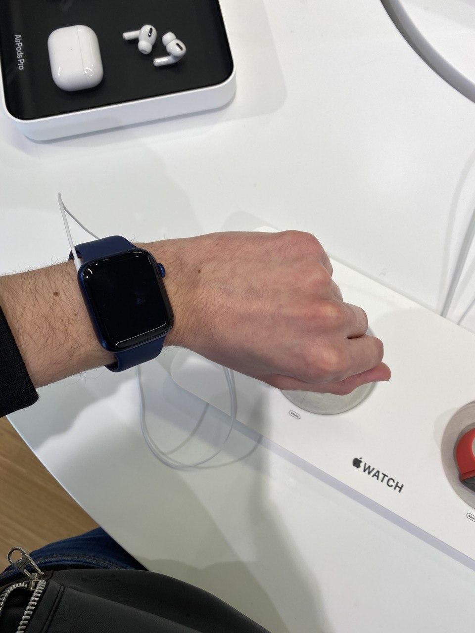 is that just the black nike band? it looks so good in these photos. I got the 40mm watch because I have tiny wrists. So far I haven't found that an issue with the screen being too small and complicaitons.If it helps anyone moving from a 38mm to 40mm then here are the two side by side, 40 on the left and 38 right. Wrist size for reference is 167mm
