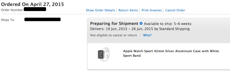 42" White Sport Band Ordered April 28th just had the dates shift.