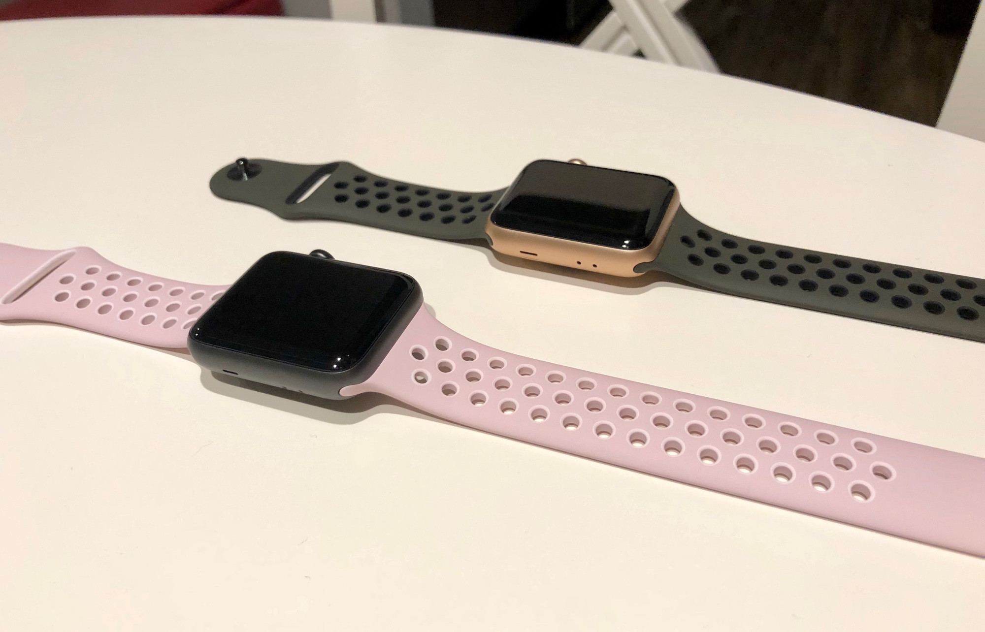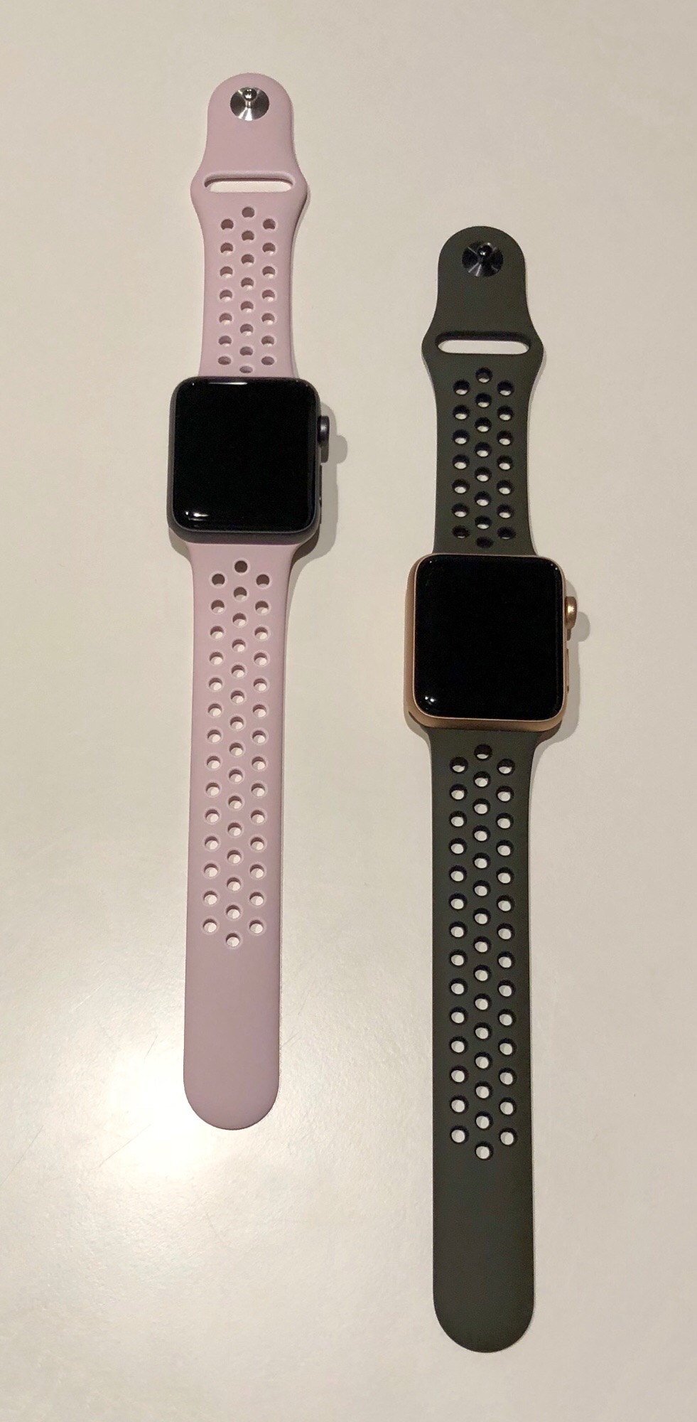 See attached pics I just shared with Barely Rose/Pearl Pink on Space Gray and Cargo Khaki/Black on my Gold one.Do you think the new pink Nike Sport Band would go with the Space Gray AW? Apple shows it off with the silver AW