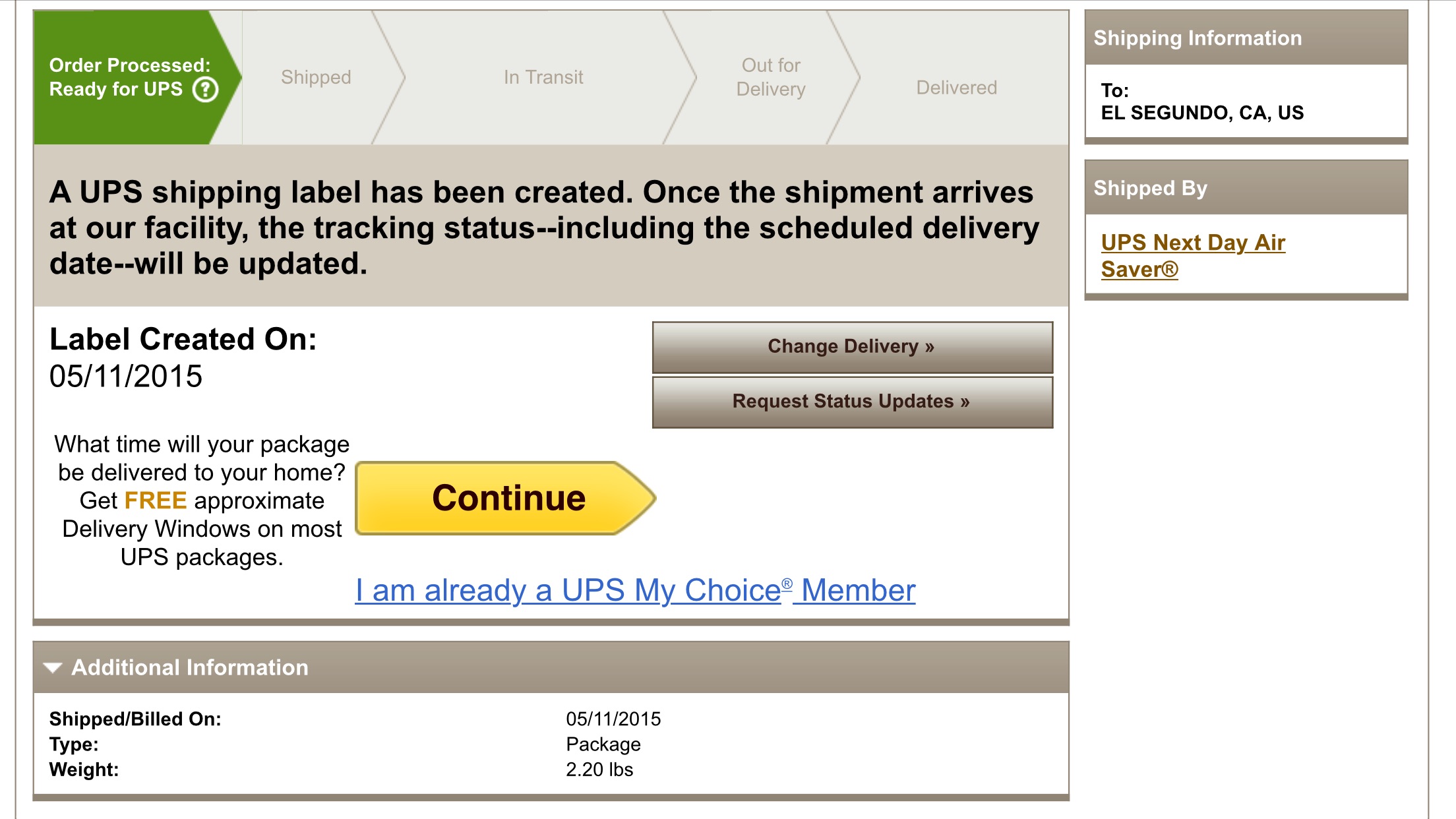 Shipped: Sunday 10 May 2015 @ 4:50p Central