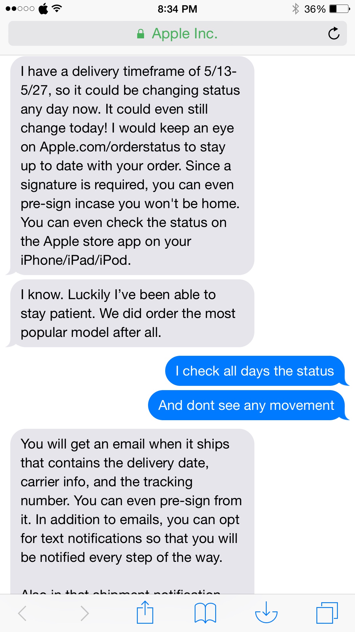 I ordered my Apple Watch at xx:15:08, according to Apple Support. In the meantime I decided to try a Microsoft Band. I ordered the Apple Sport on purpose because I want a watch that I can wear to work, to the gym, and use when I run. I also wanted a watch to track my daily activities. I also like the notification features of email, phone calls, and text messages on my wrist; it's pretty cool that you can drive get a vibration, twist your wrist and preview the email, text, or see who's calling.