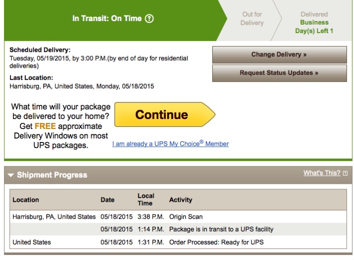My watch is scheduled to be delivered by end of day tomorrow. UPS usually doesn't deliver until 6-8pm where I live so decided to change it to pick up at the Customer Service Center.
