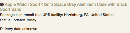 My watch is scheduled to be delivered by end of day tomorrow. UPS usually doesn't deliver until 6-8pm where I live so decided to change it to pick up at the Customer Service Center.