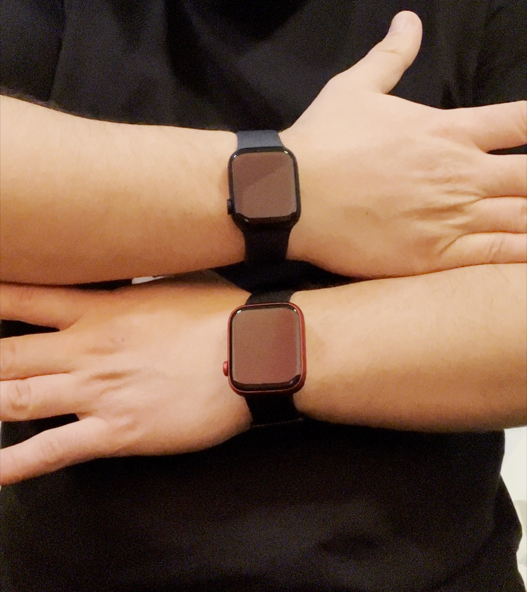 They look the same size in these photos because one is a little further away from the camera? I like the 45 on you, but you need to buy the size that feels better to you and suits your needs.Thank you all for your nice answers and insights. Today I received a "green" 45mm and wanted to share the new comparison with you guys. It's the 41's band on both watches for those wondering. They look almost identical on the pictures to me. Can you see a difference?