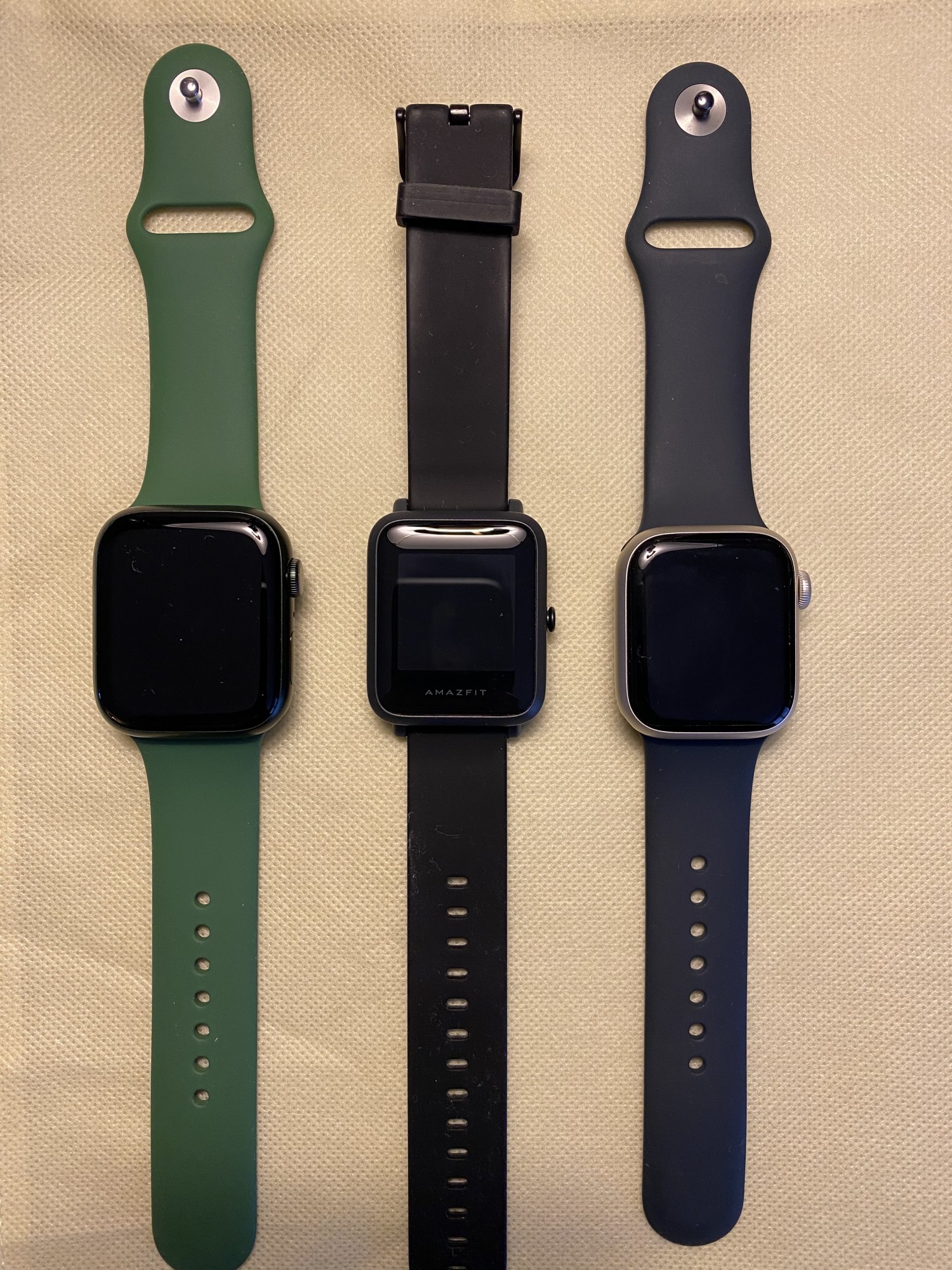 Here’s a comparison between 41mm and 45mm. I’ve also included the Amazfit Bip S for comparison in the middle of one of the pics. It is 42mm.