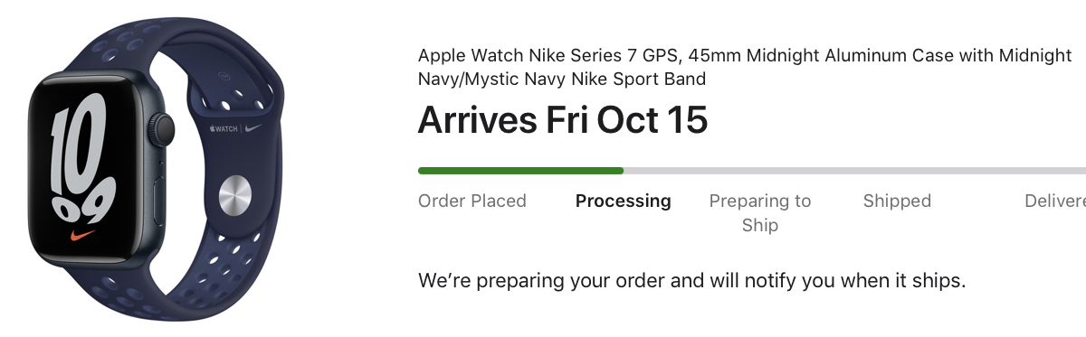 I placed my order for a Graphite 45mm with midnight sport band. Got delivery date of Nov 2-9 and this was at 0810 EDT (10 minutes after going live). Would’ve sooner but the site was congested.