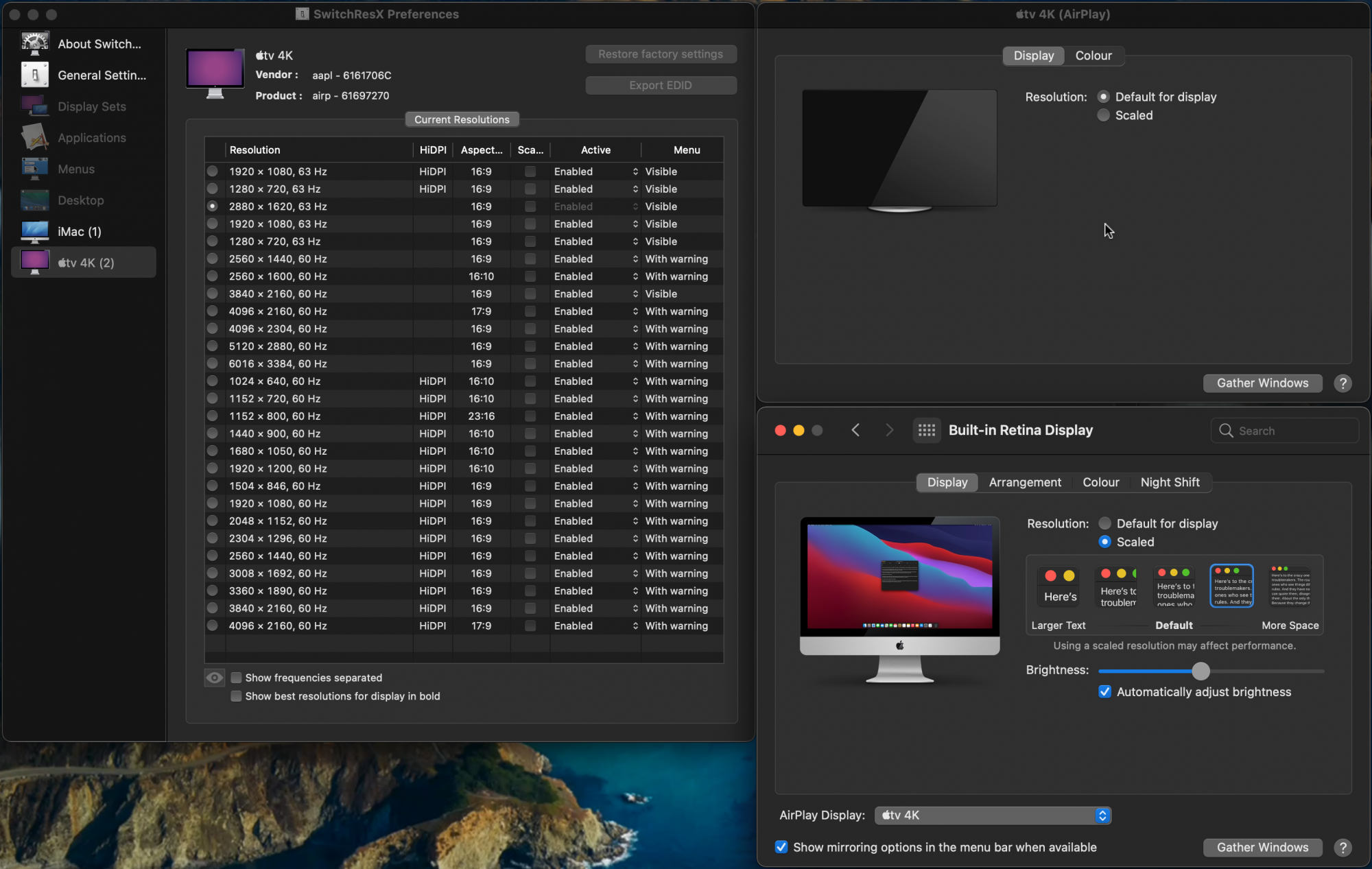Available resolutions can be seen in macOS System Preferences and just to double-check, I confirmed them also with the SwitchResX as seen on the attached screenshots (these were taken on iMac screen).