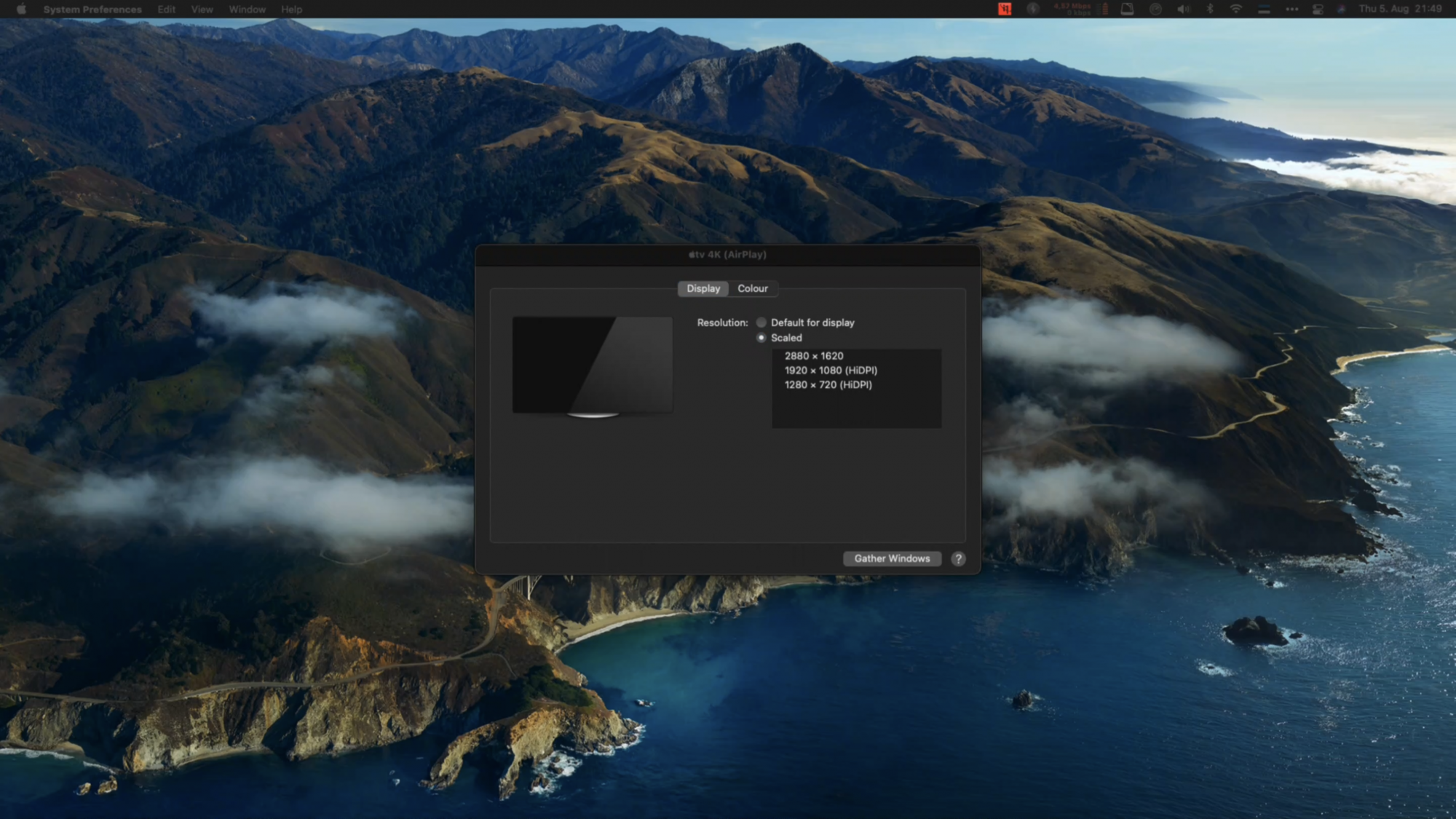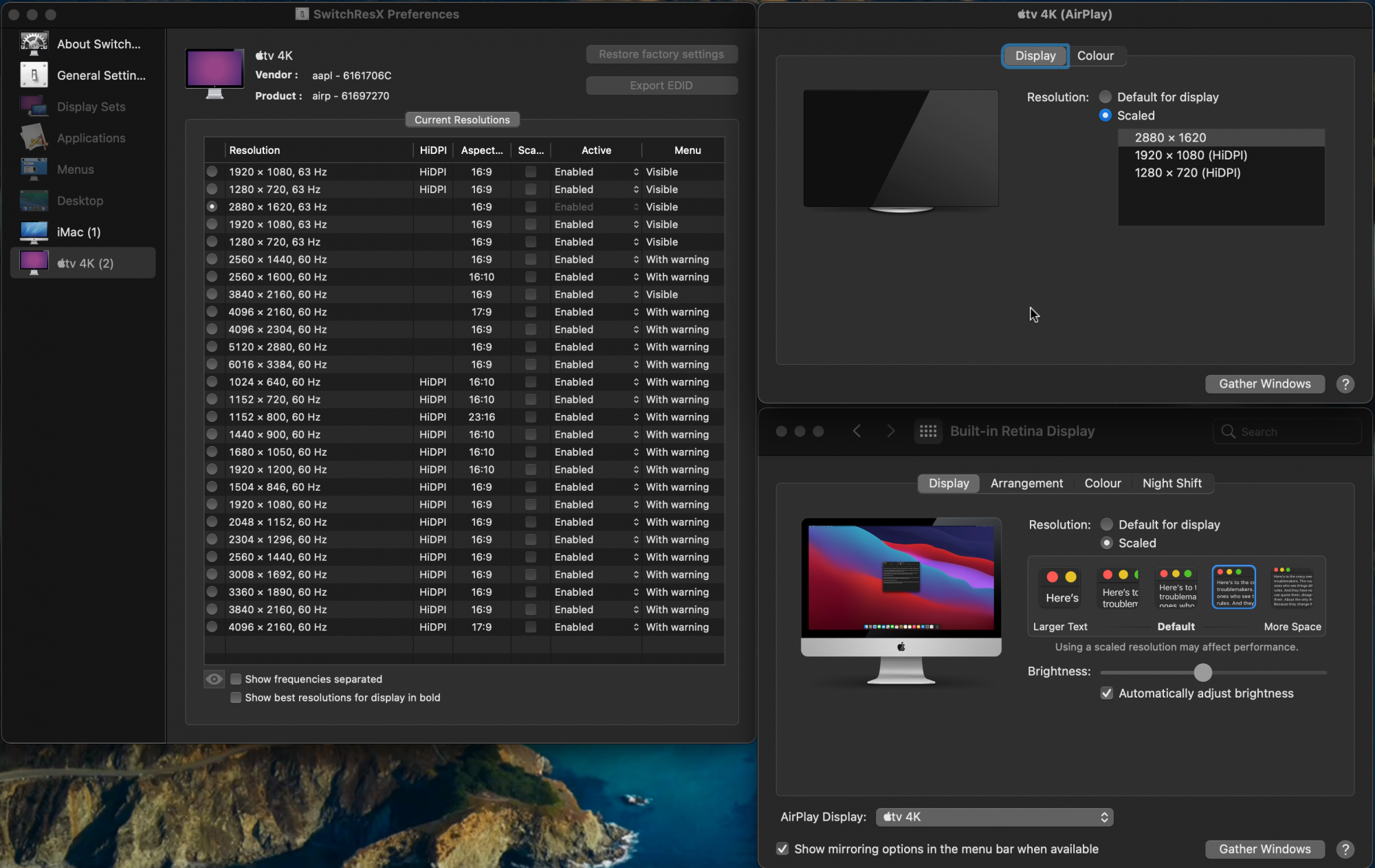 - 2880x1620 (which is also "Best for the AirPlay display")
