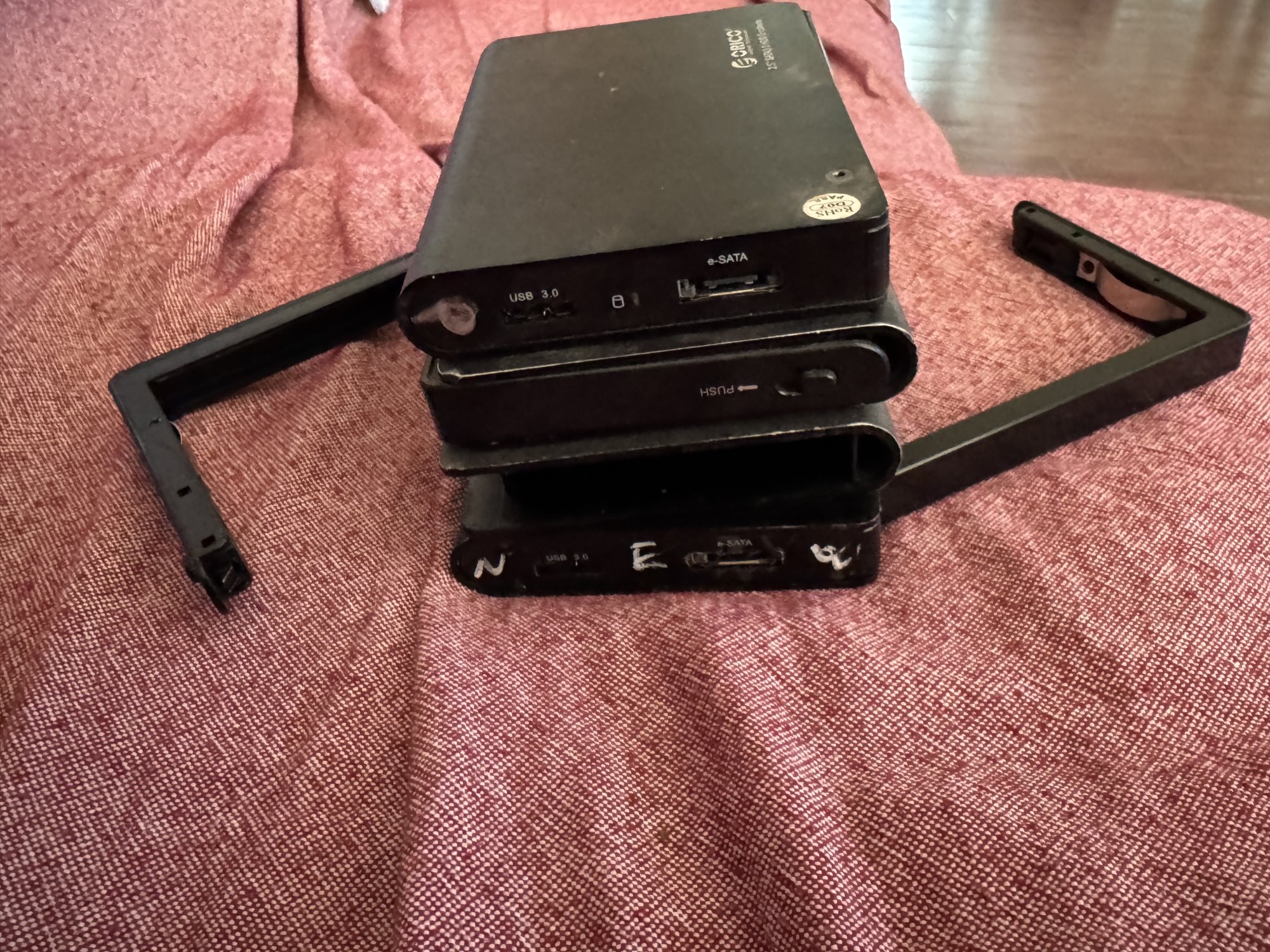 I'd like to add either a 2-bay OWC Mercury Elite Pro or a 4-bay IcyBox or Fantec.