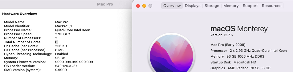 I have a 2009 4,1 Mac Pro that I’ve flashed to 5,1. It has dual 2.66 X5550 quad core Xeon processors. I’ve installed 8x 4GB 1333MHz PC3 - 10600R DIMMs in it. The computer lists RAM speed as 1066MHz (and only lists 24GB).