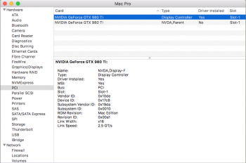 I hope someone can help me figure this out. For the past ten months, I've been using a flashed NVIDIA GTX 980 Ti in my Mac Pro 5,1 (Mid 2010). It's worked perfectly. I do a lot of 3D rendering and this card sped everything up and it was wonderful. Now I'm pretty sure there's nothing wrong with the card itself, but something has changed recently and my programs no longer seem to recognize the graphics card as something to use. Everything is apparently running on CPU, which pushes my CPU to the max when I try to render a 3D image or use Zbrush or make Photoshop do something complex. Everything I'm used to seeing the GPU help with is trying to work with CPU only and I can't see why.
