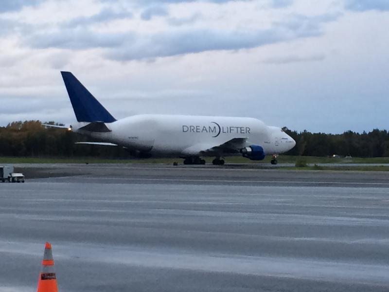 That is a Boeing Dreamlifter. It is operated by Boeing to deliver 787 parts to assembly plants.