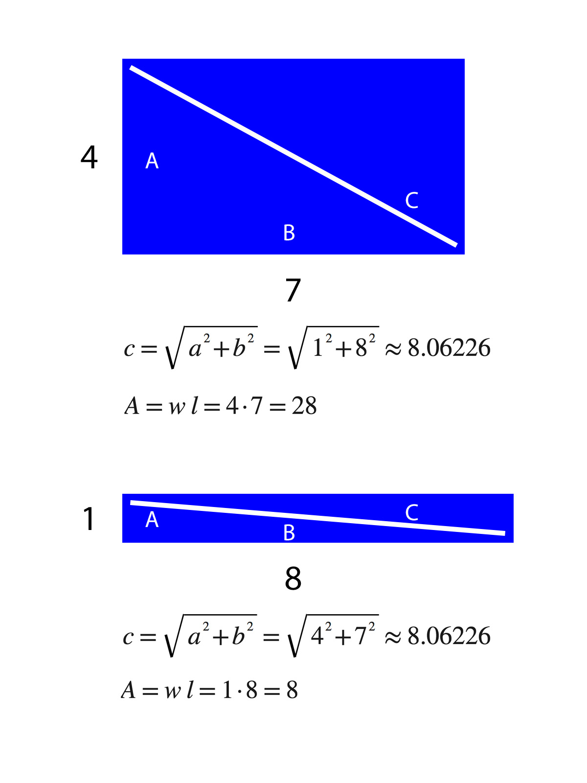BASIC MATH? I take it that you didn't click on that link, did you? I tried to educate you, but you decided to remain ignorant. Here's the deal: You can't just "believe" that math is a certain way. This isn't like politics. This isn't like religion. You can't just think that the math does what you think it does. You can't just make up math and spout it around these forums. Not on my watch. I've slightly modified my proof. This new shape has a hypotenuse of ~9.2 and yet has an area of 18. The old shape has a hypotenuse of ~8 and an area of 28. This immediately invalidates what you've written above, emphasis mine. Explain your way out of this one! YOU CAN'T BEAT MATH, so stop trying to! You'll never win against math. You can't win. This isn't a normal internet debate. You're wrong because math is right.You haven't demonstrated anything other than that surface area is a function of the hypotenuse which is exactly what I've said. It does not matter how wide the iPhone 6SSS+ is if the hypotenuse is shorter, which it is. The area of a given space is a function of the length of the hypotenuse because the vertical and horizontal sides depend on the hypotenuse (Pythagorean theorem). The iPhone X screen measures in at 5.85 inches on the vertical and mathematically has a larger surface area than the iPhone 6SSS (8) with or without the notch. You can't beat math.