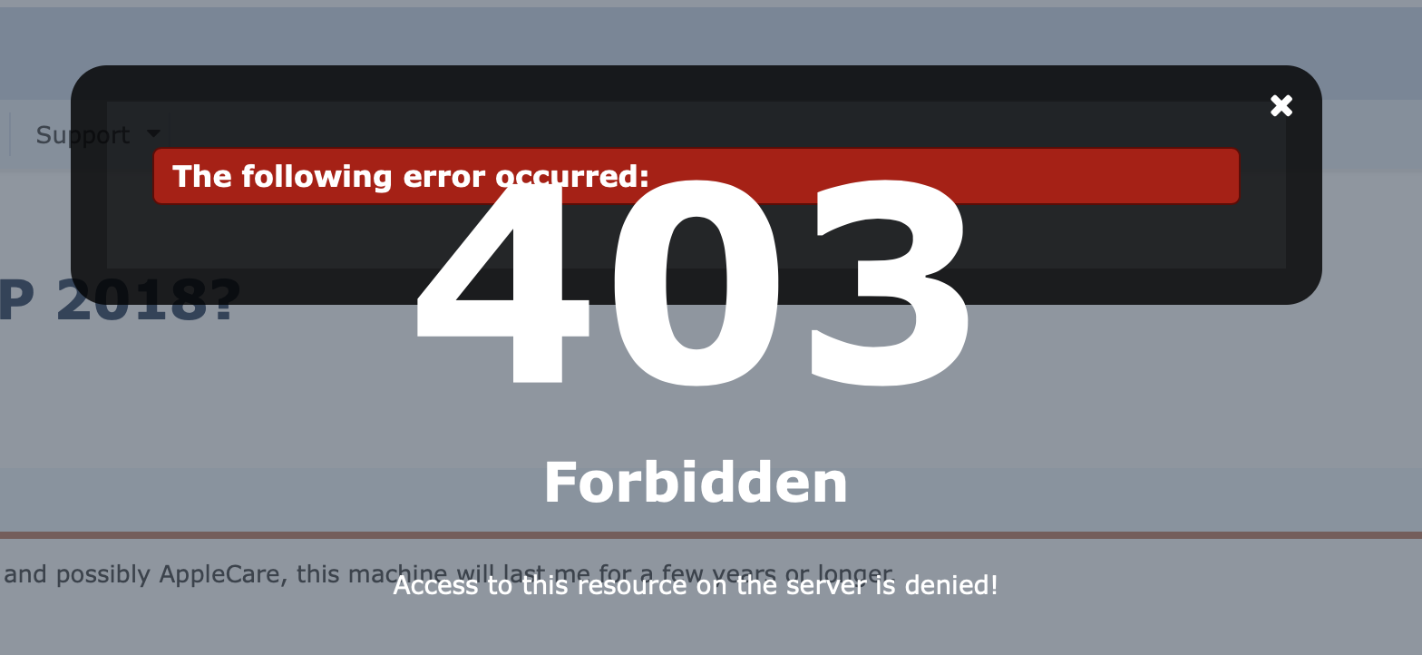 Receiving another "403 Error" message in the private section just now.